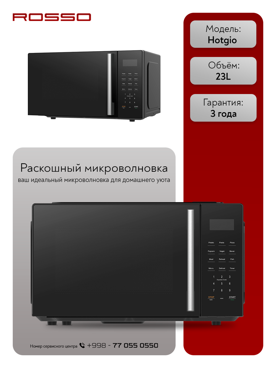 МИКРОВОЛЬНОВАЯ ПЕЧЬ ROSSO Hotgio 23LWBL